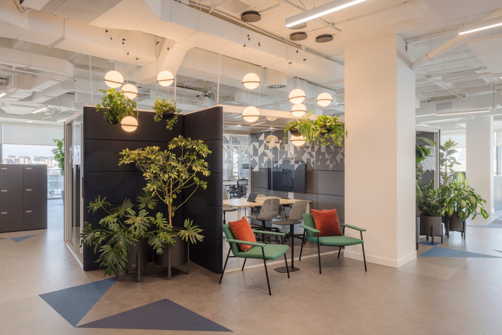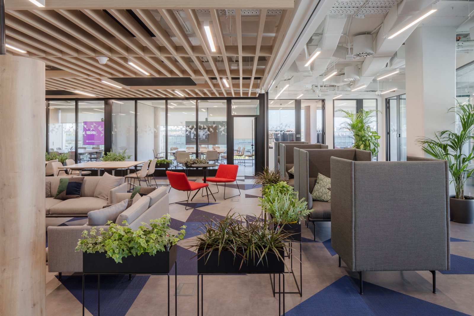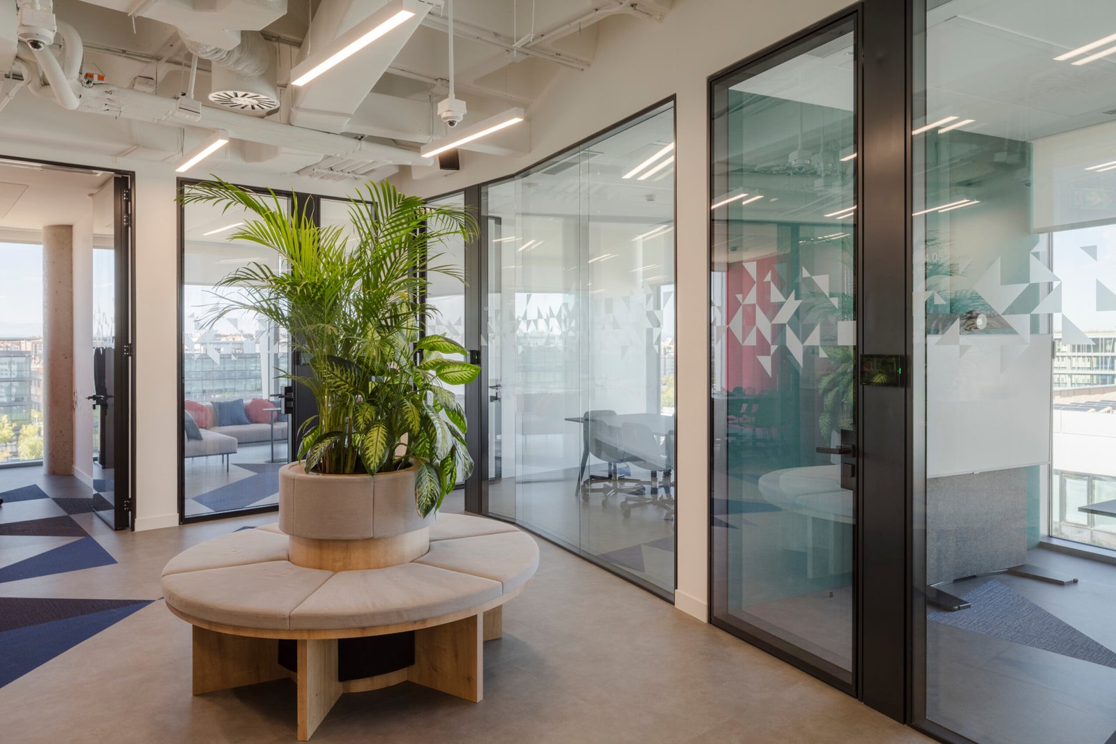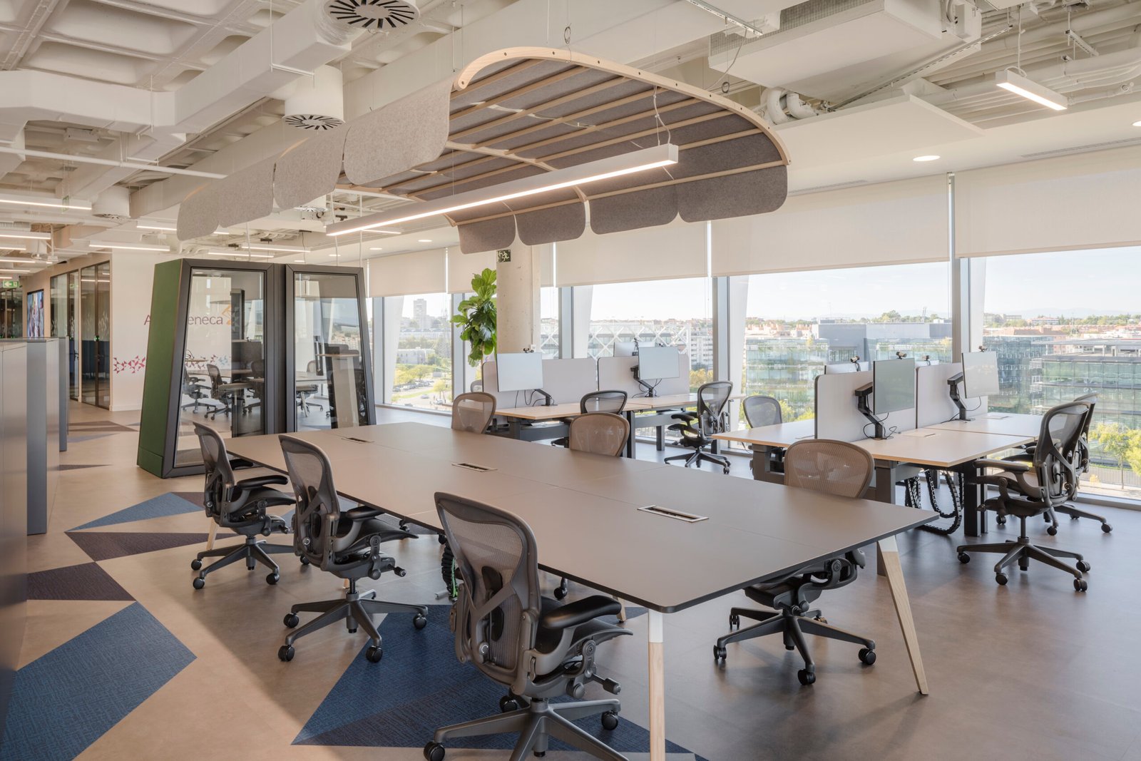 Nuestro objetivo al diseñar estas oficinas fue dotarlas de un espacio con identidad de conjunto que, al mismo tiempo, tuviera bien demarcados los sectores de trabajo y, por supuesto, asegurado el confort acústico de sus diferentes áreas. Fue un trabajo en colaboración con CBRE.