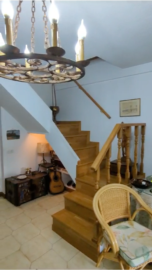 Por lo demás, recuperamos el ladrillo visto de la terraza, restauramos el solado quebrado por el paso del tiempo y sustituimos las baldosas rotas y frías del salón y pasillos por un pavimento vinílico de madera, más trotero para la actividad de esta familia.