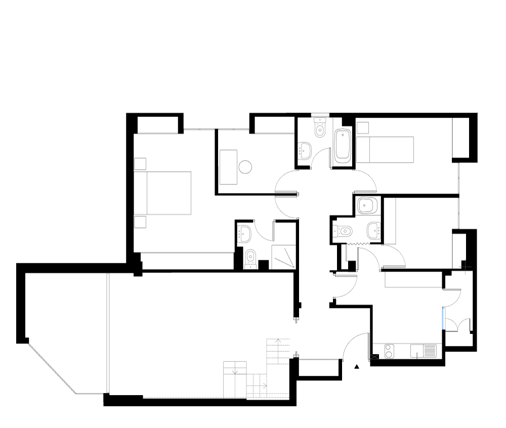 La vivienda original tenía una distribución que desaprovechaba gran parte de su superficie y que impedía el paso de la luz. Para recuperarla funcionalidad eliminamos rincones y redimensionamos las estancias.