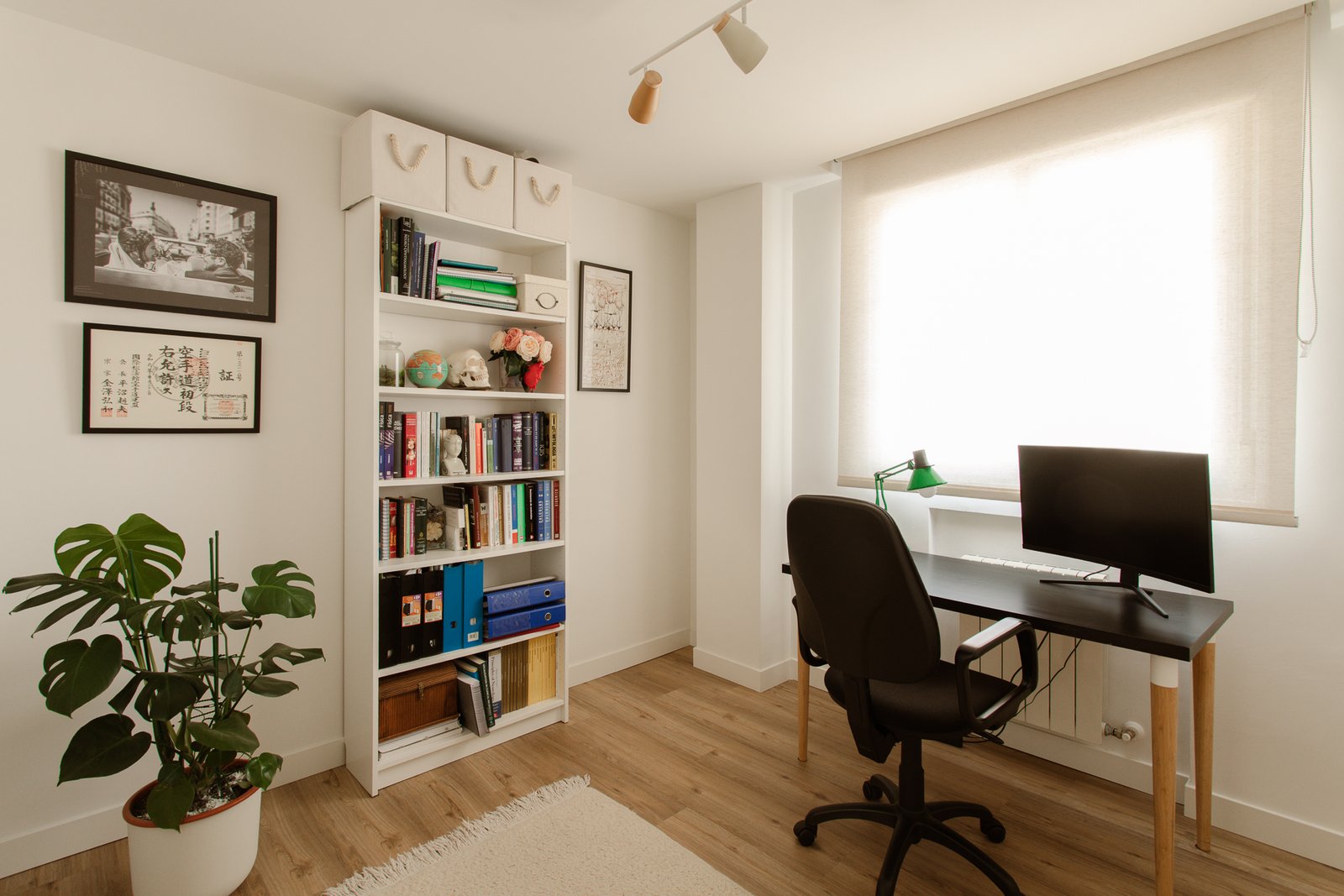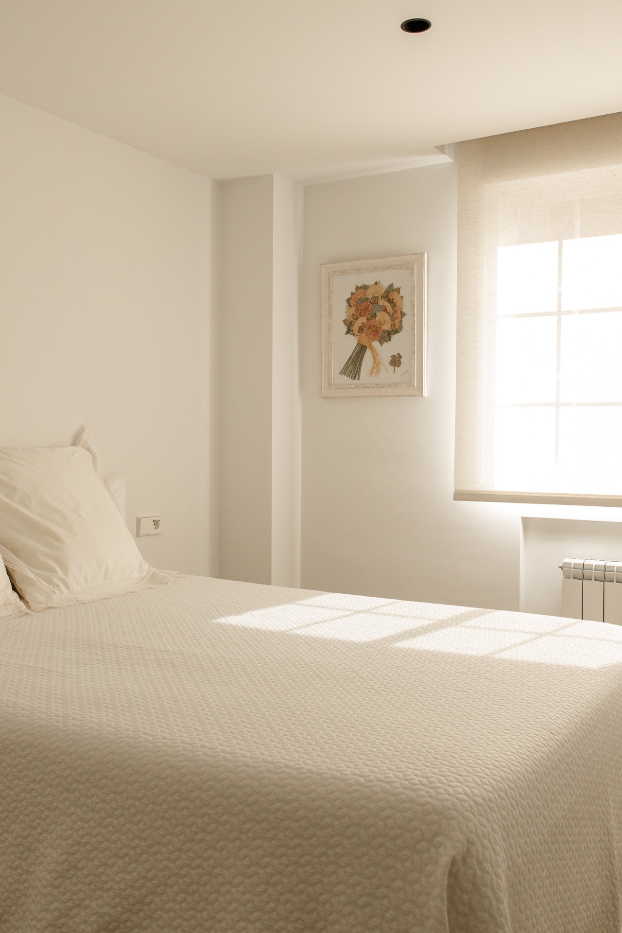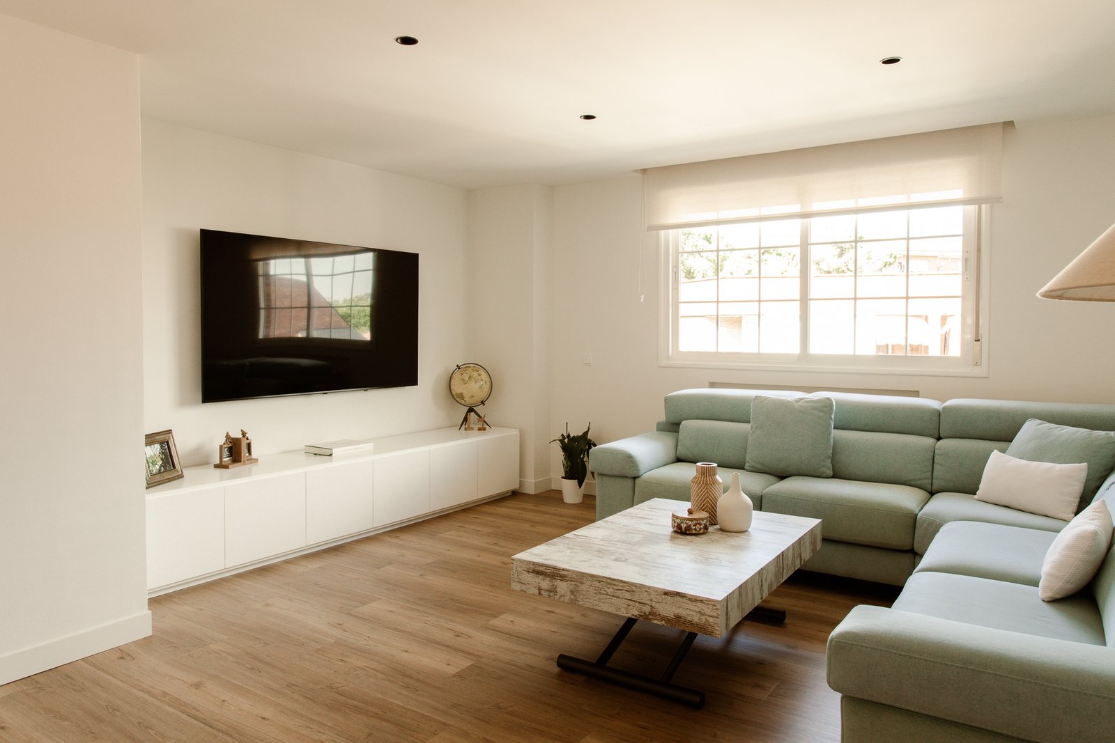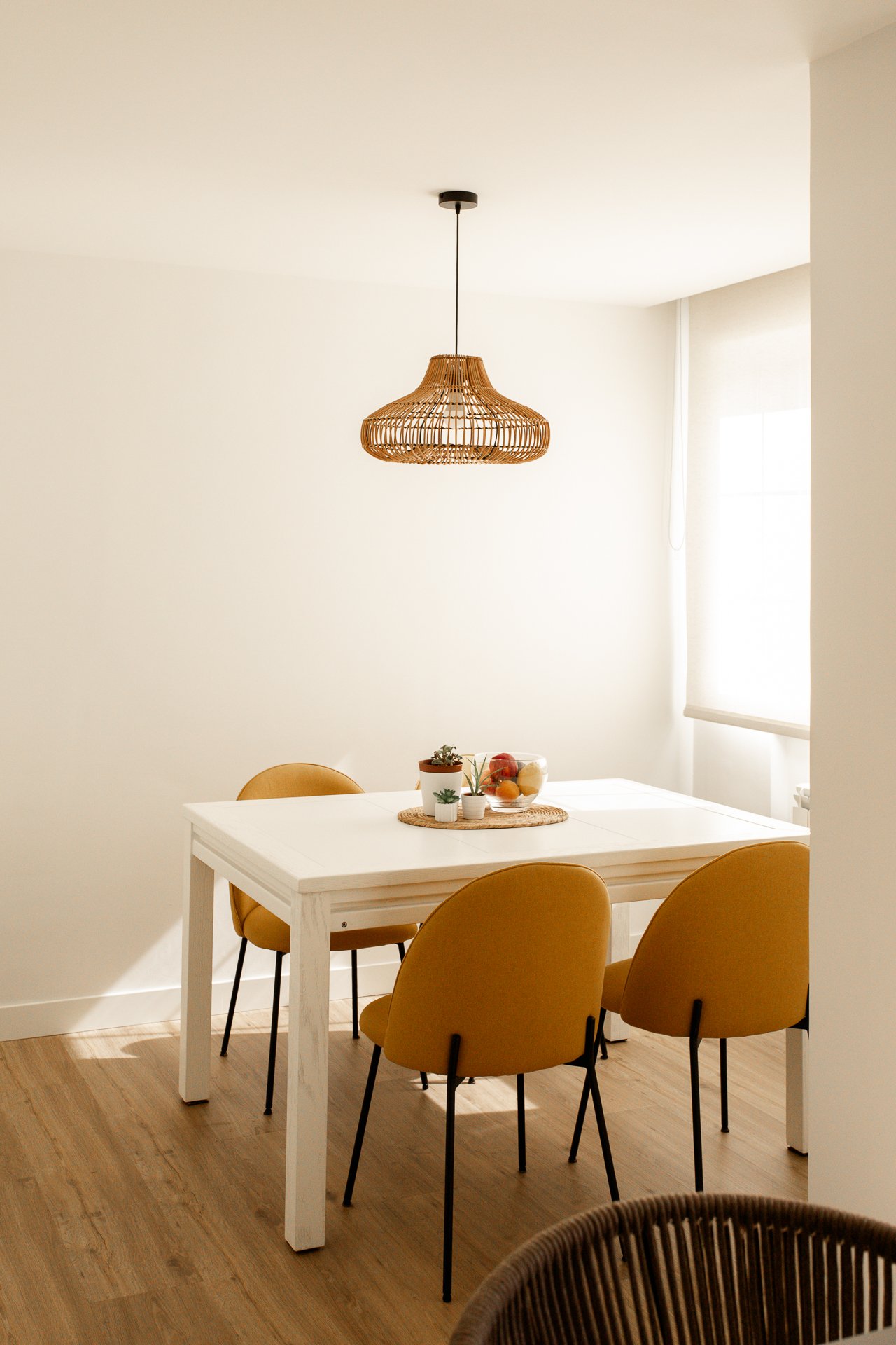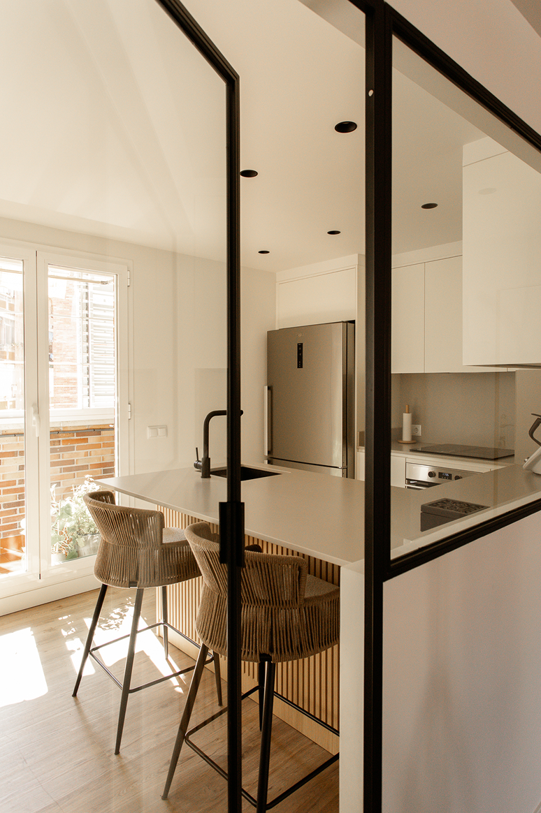 Al mismo tiempo, se abre hacia el salón mediante una cristalera, lo que amplía el espacio de convivencia cuando vienen visitas, y deja pasar la luz para iluminar ambas estancias.